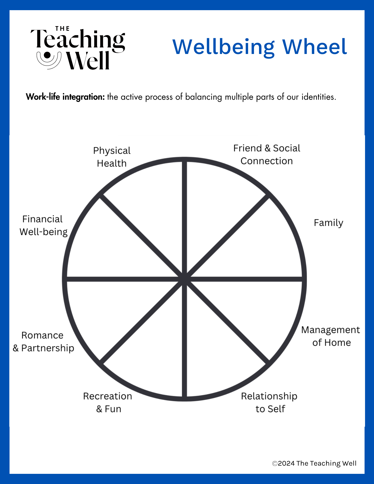 Click here to download a PDF of the Wellbeing Wheel with Instructions